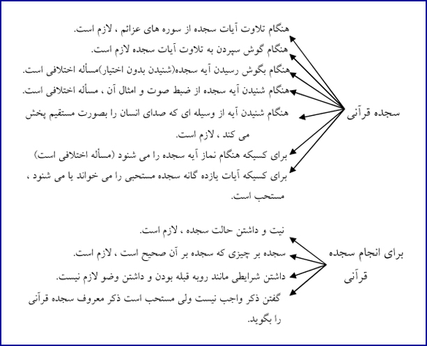 10) افرادیکه غسل واجب بر عهده آنهاست چنانچه آیه سجده را تلاوت کرده و یا بشنوند می توانند بدون غسل ، سجده کنند.[13]
